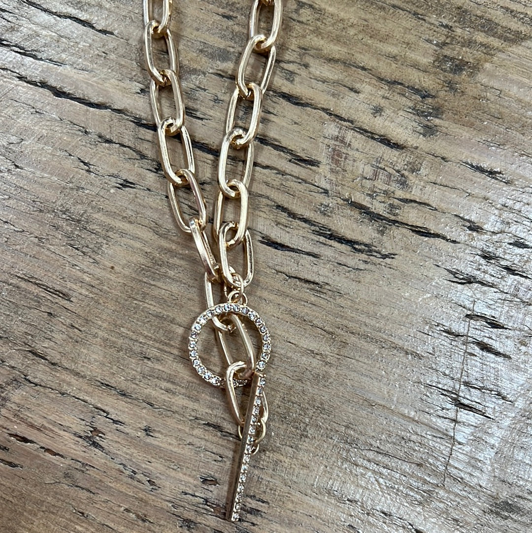 3091 Rhinestone Toggle Clasp Chain Necklace, Gold