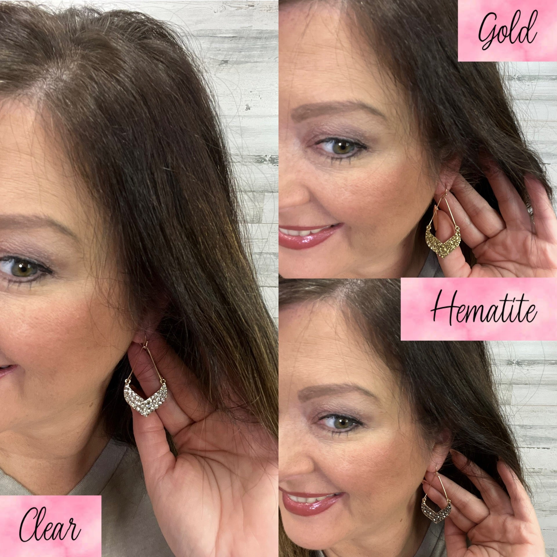 - Fantastic diamond shaped dangle earrings with gemstones.
