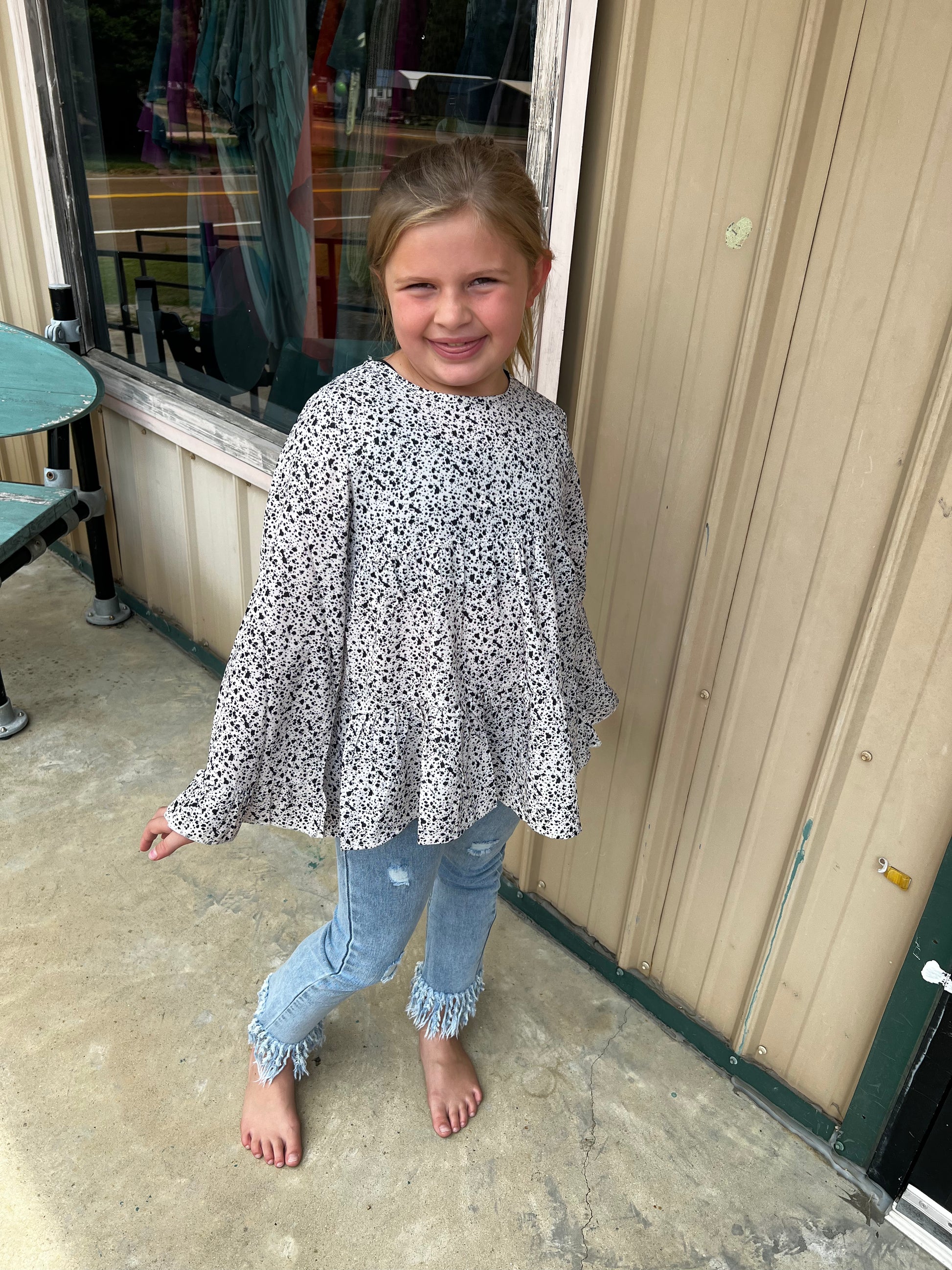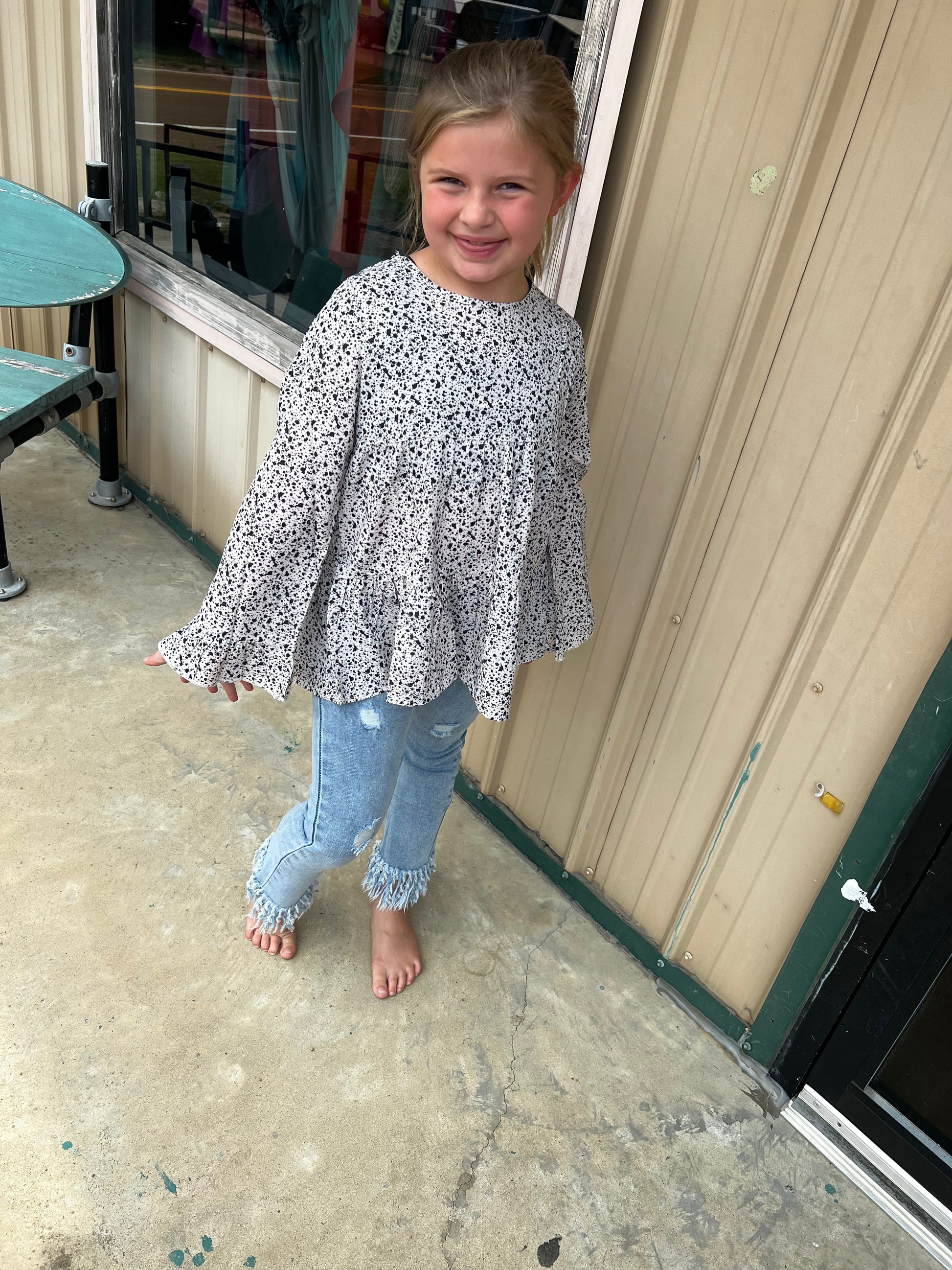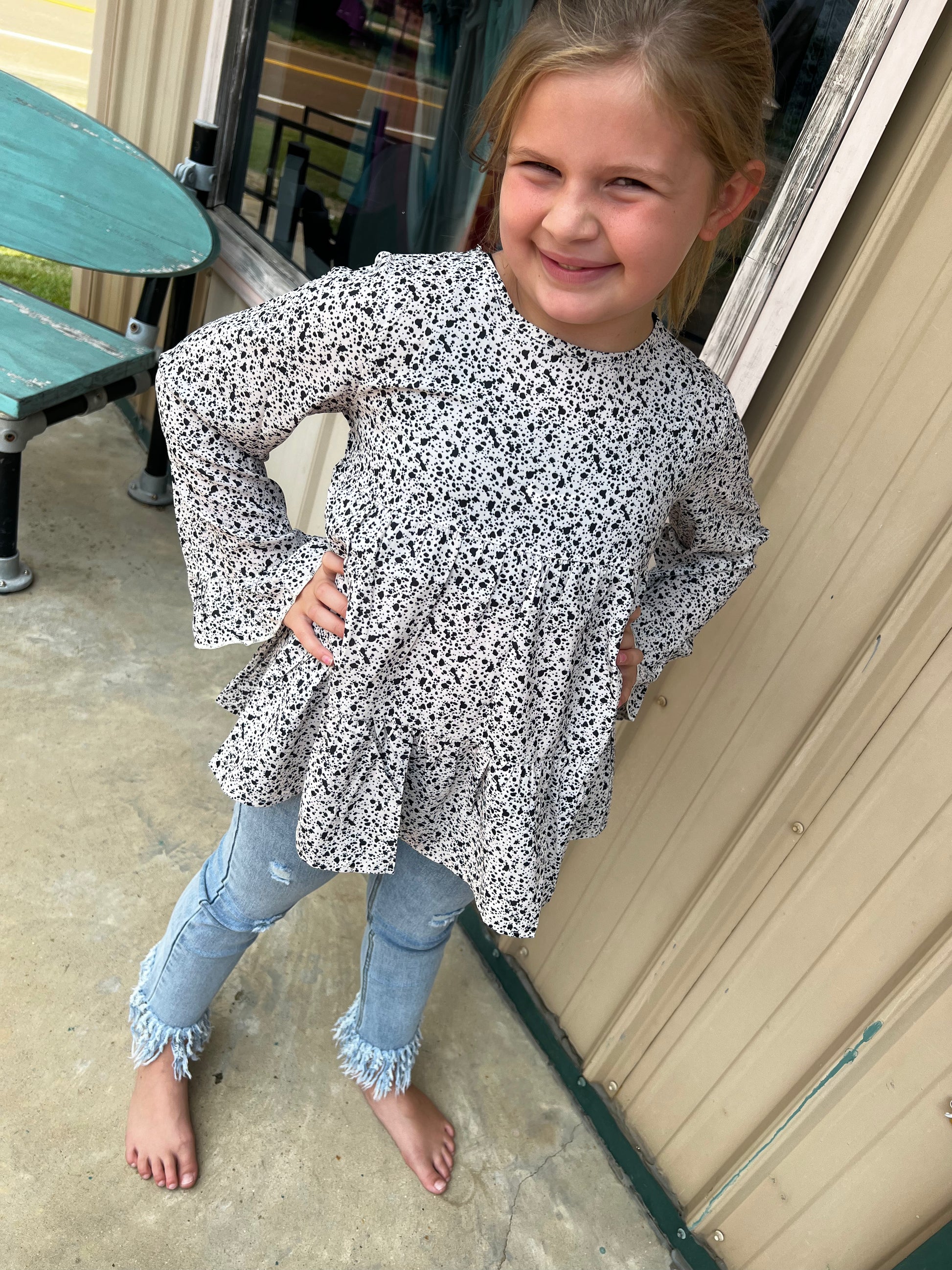 Look spot-on and fashion ready in this Girls Spotted Around Top! A must-have style in cozy relaxed fit, this lovely little blouse comes in an irresistibly cute pattern, perfect with your fave jeans or those comfy leggings. Get ready to reinvent your wardrobe this fall!
