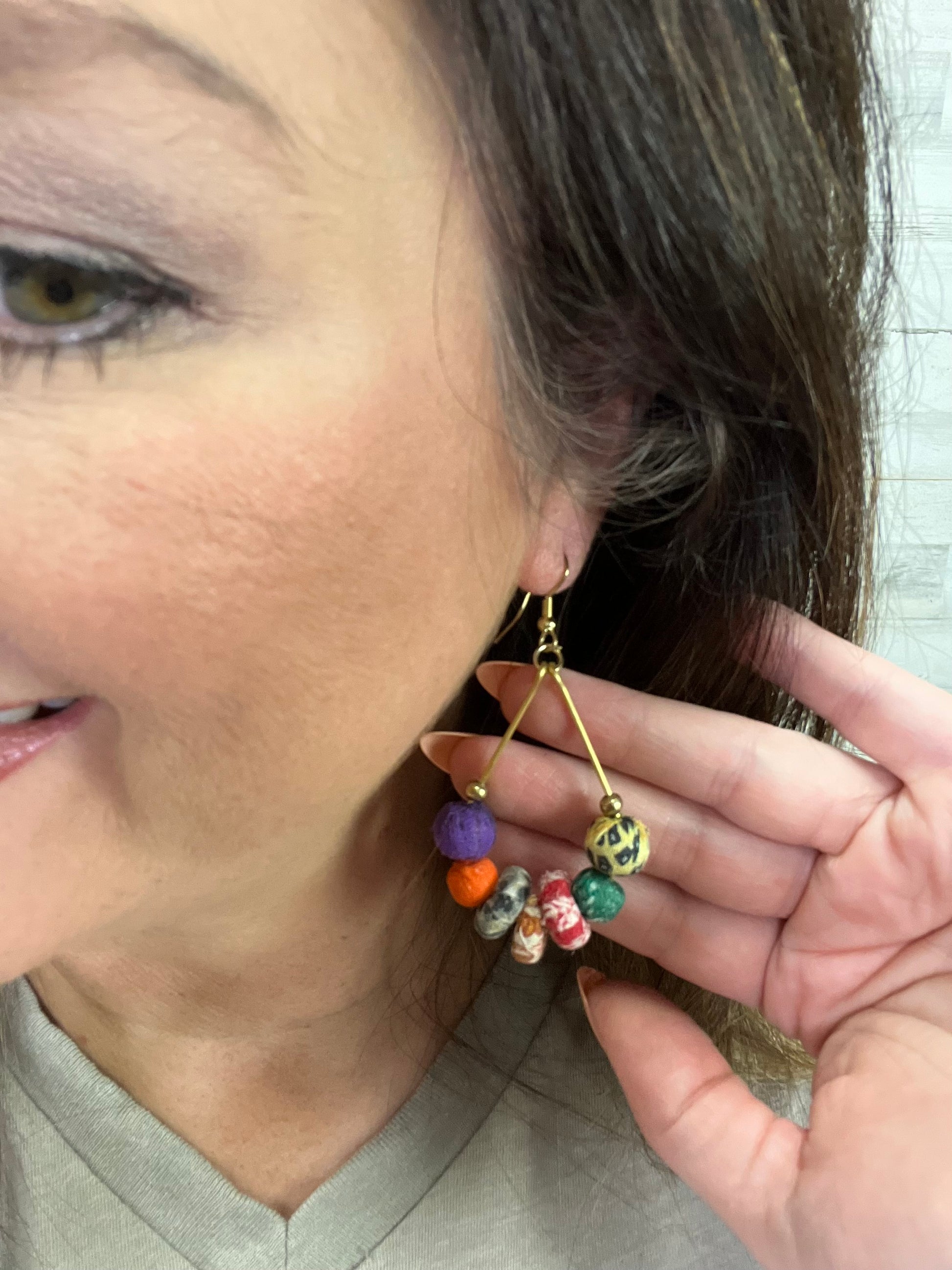 - Trendy fish hook hand-wrapped cotton beaded teardrop earrings.