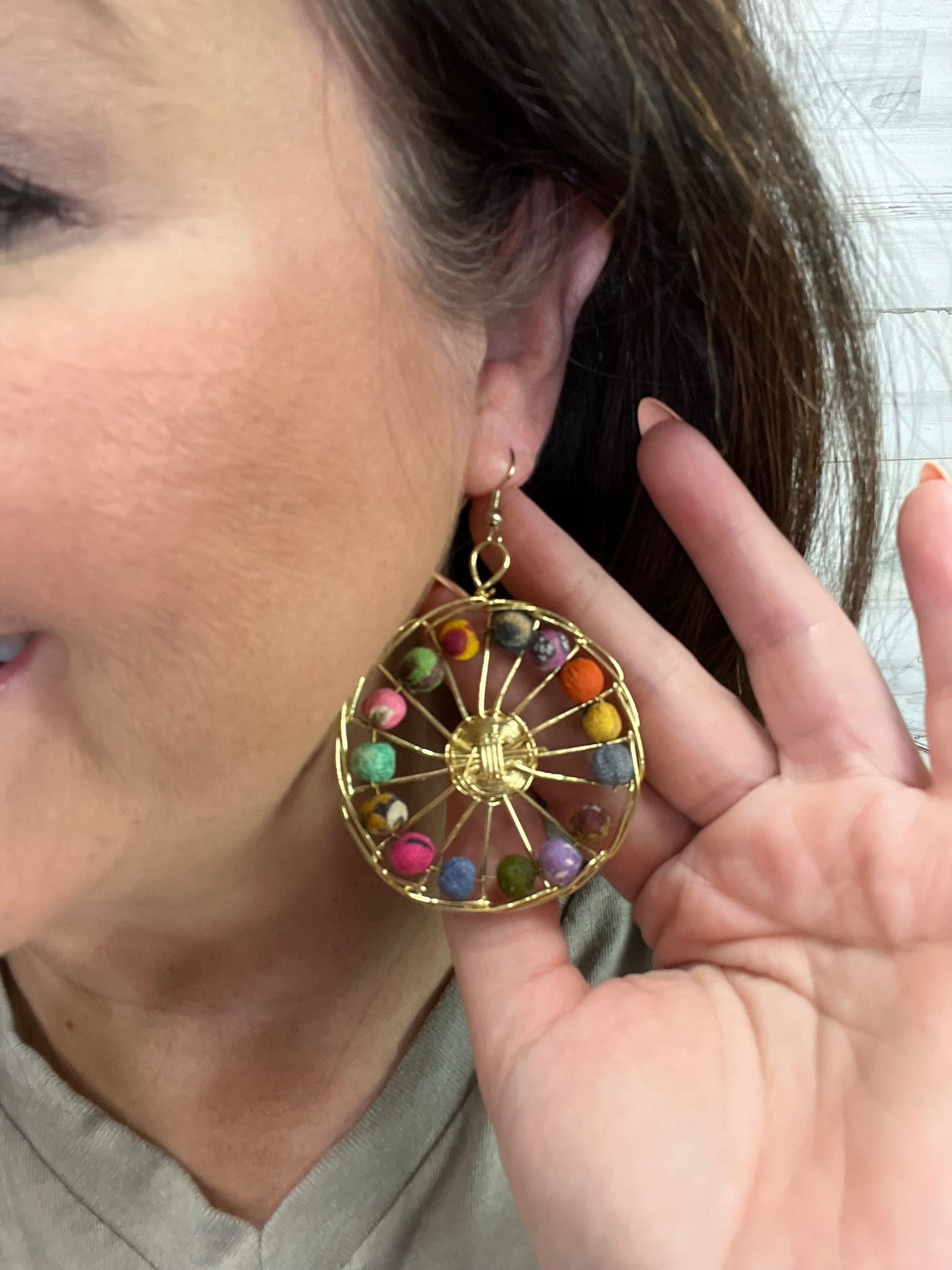 - Colorful fun hand-wrapped circular beaded dangle and drop earrings.