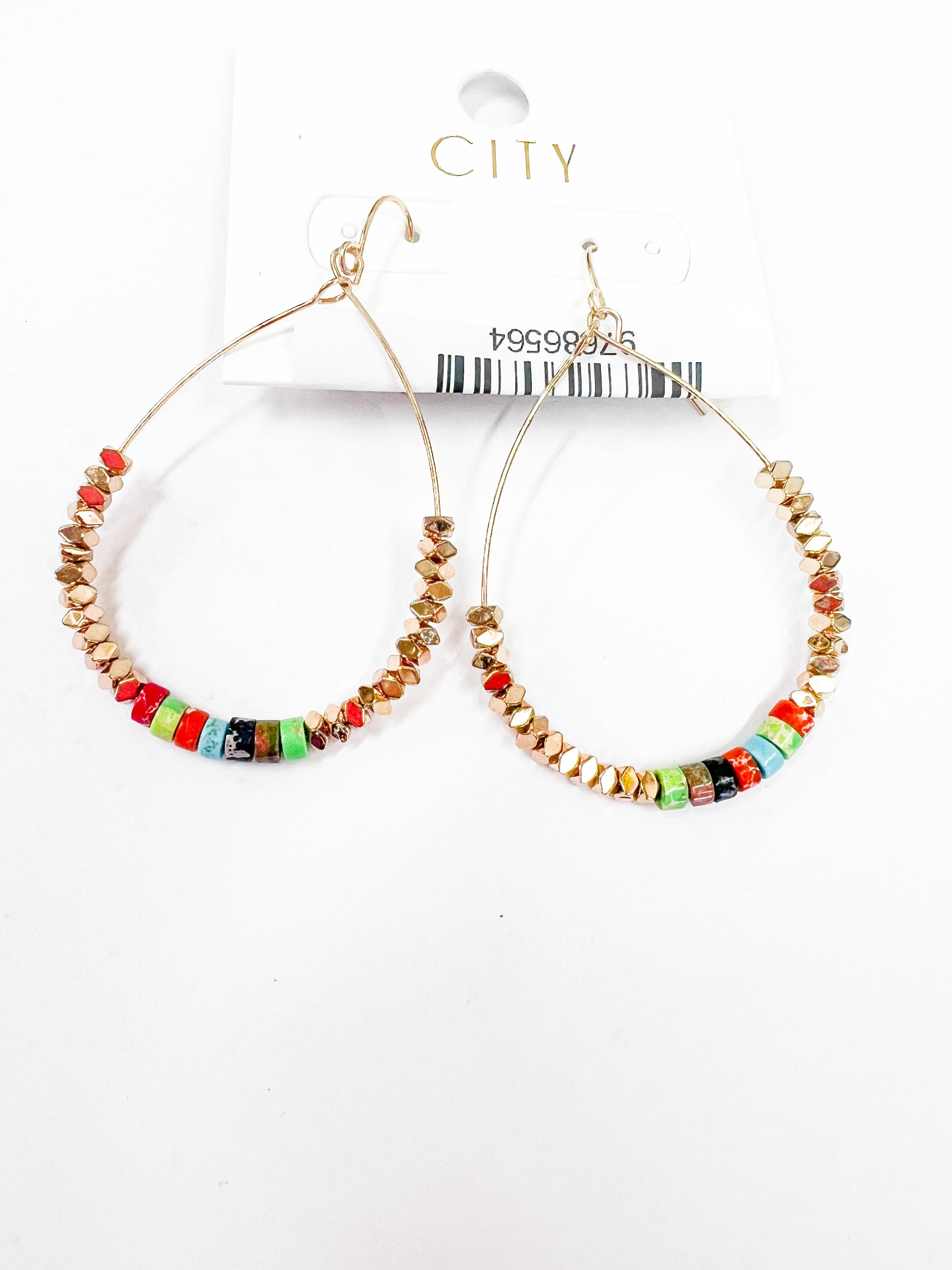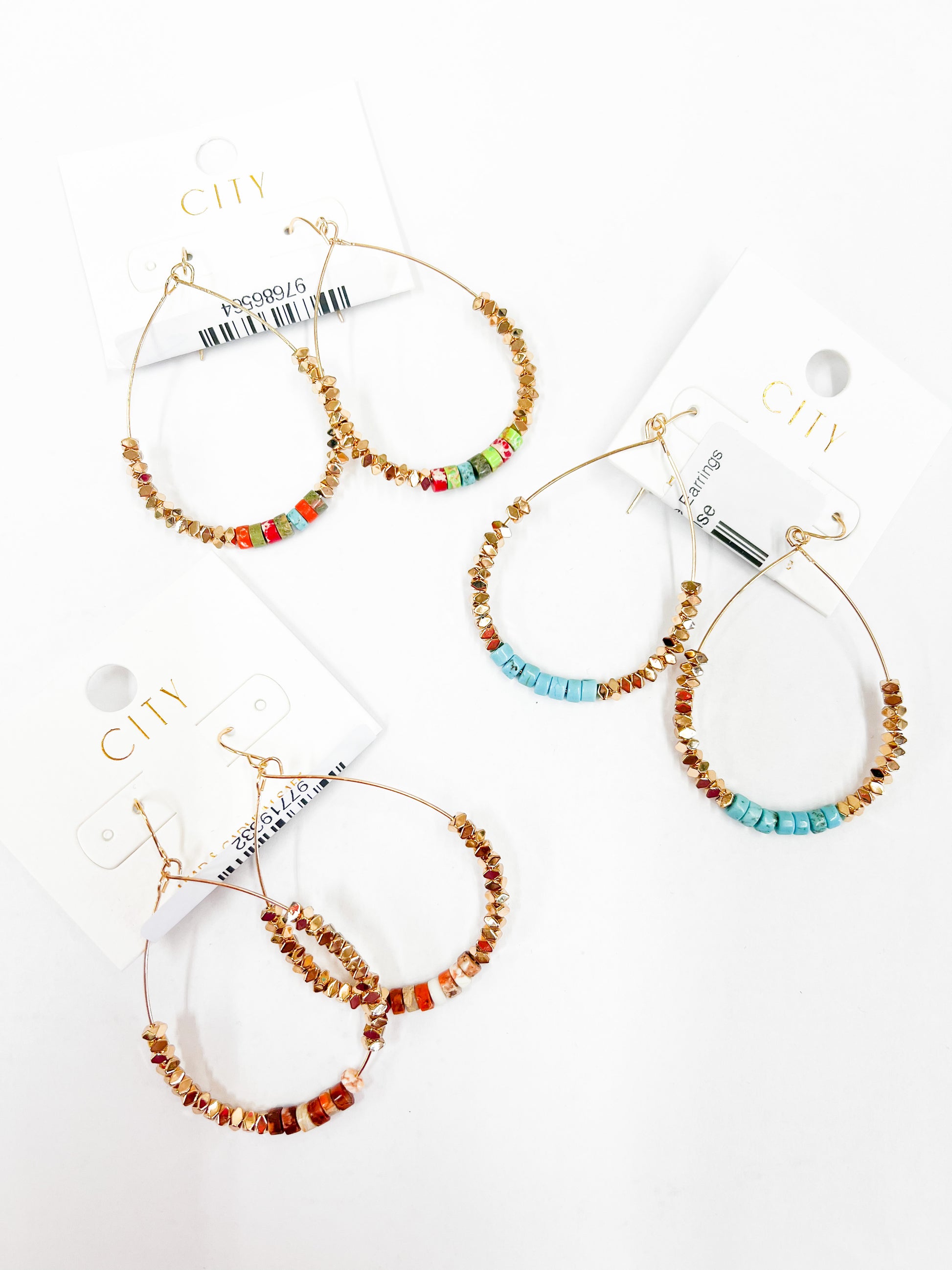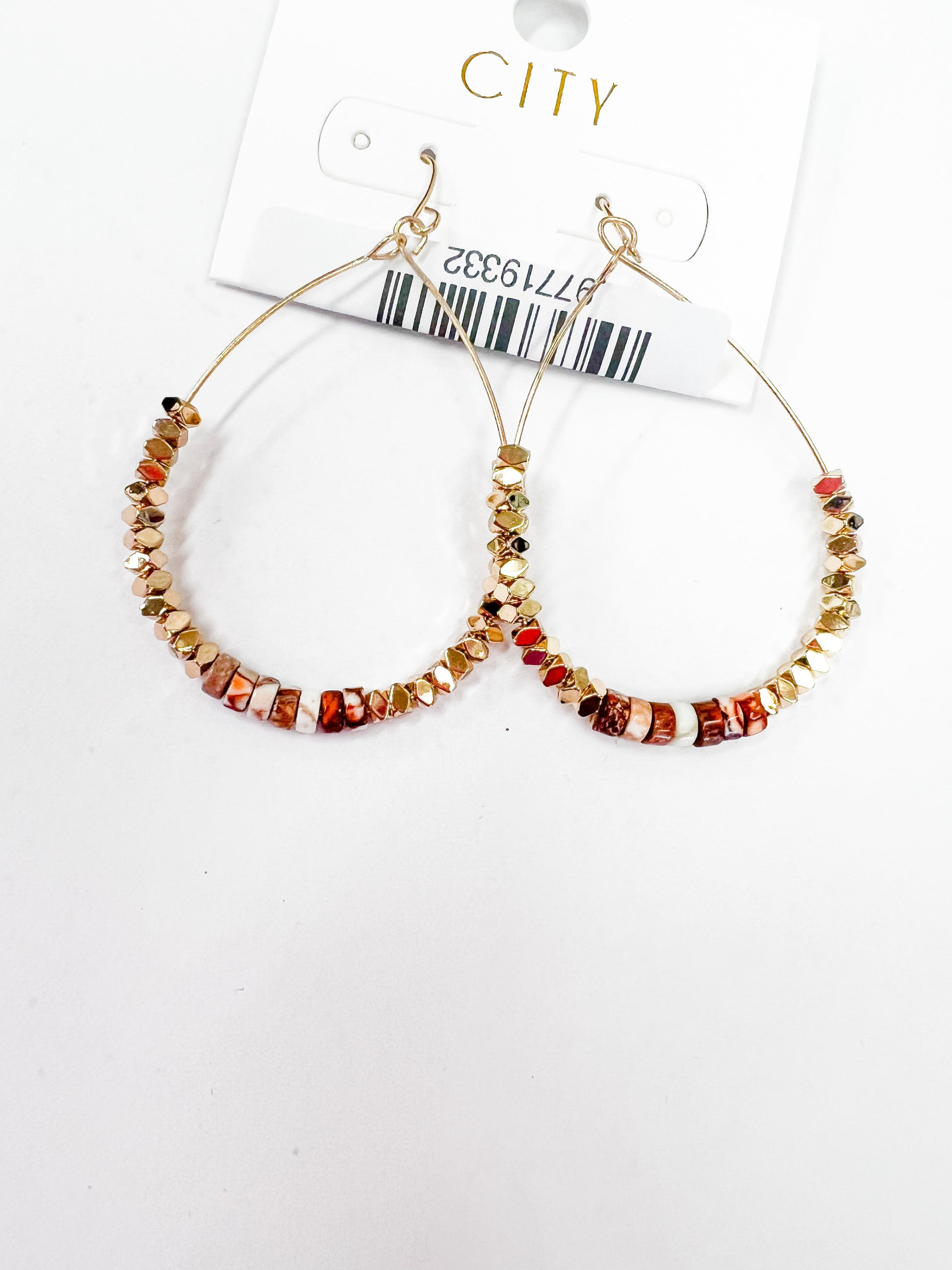 Look fabulous in these one-of-a-kind dangle earrings! Crafted from metal and natural stone beads, these tear drop earrings will add a unique twist to any outfit. Rock the natural vibes of the stones and make a statement with these fascinating accessories!