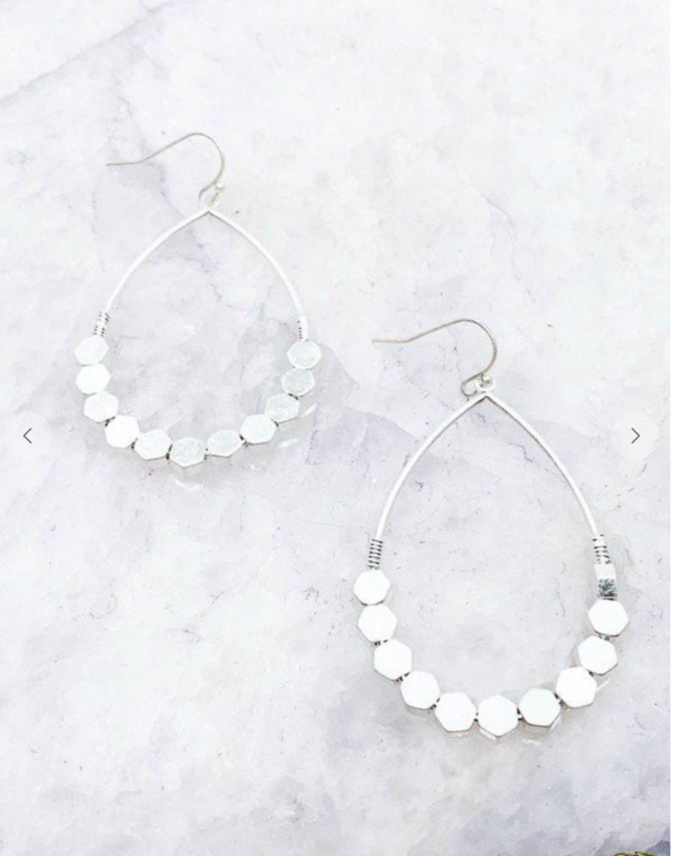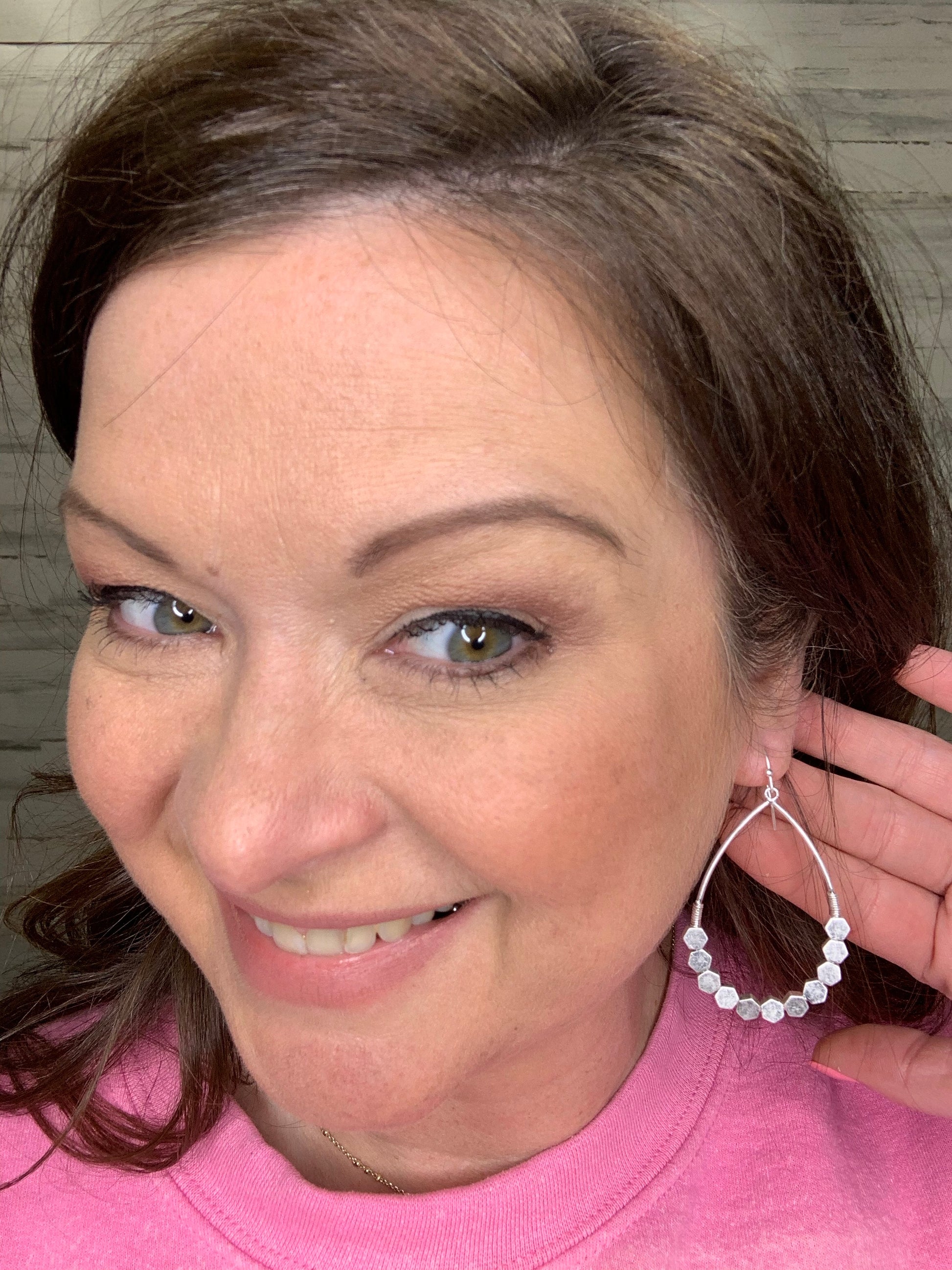 Multi Hexagon Shaped Teardrop Earrings, Silver