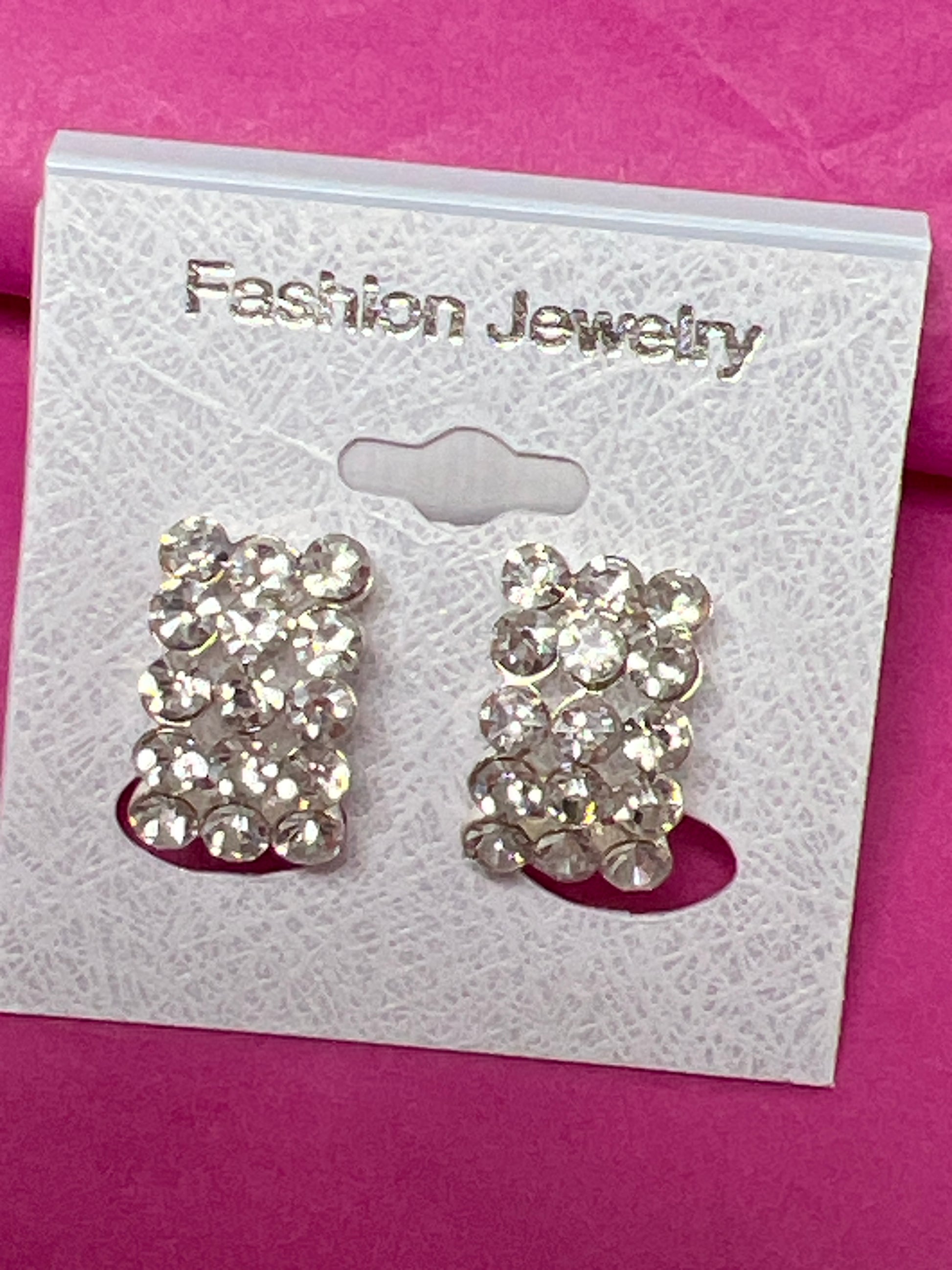 Silver Crystal Rhinestone 3-strand rectangle Clip earrings-25841c100