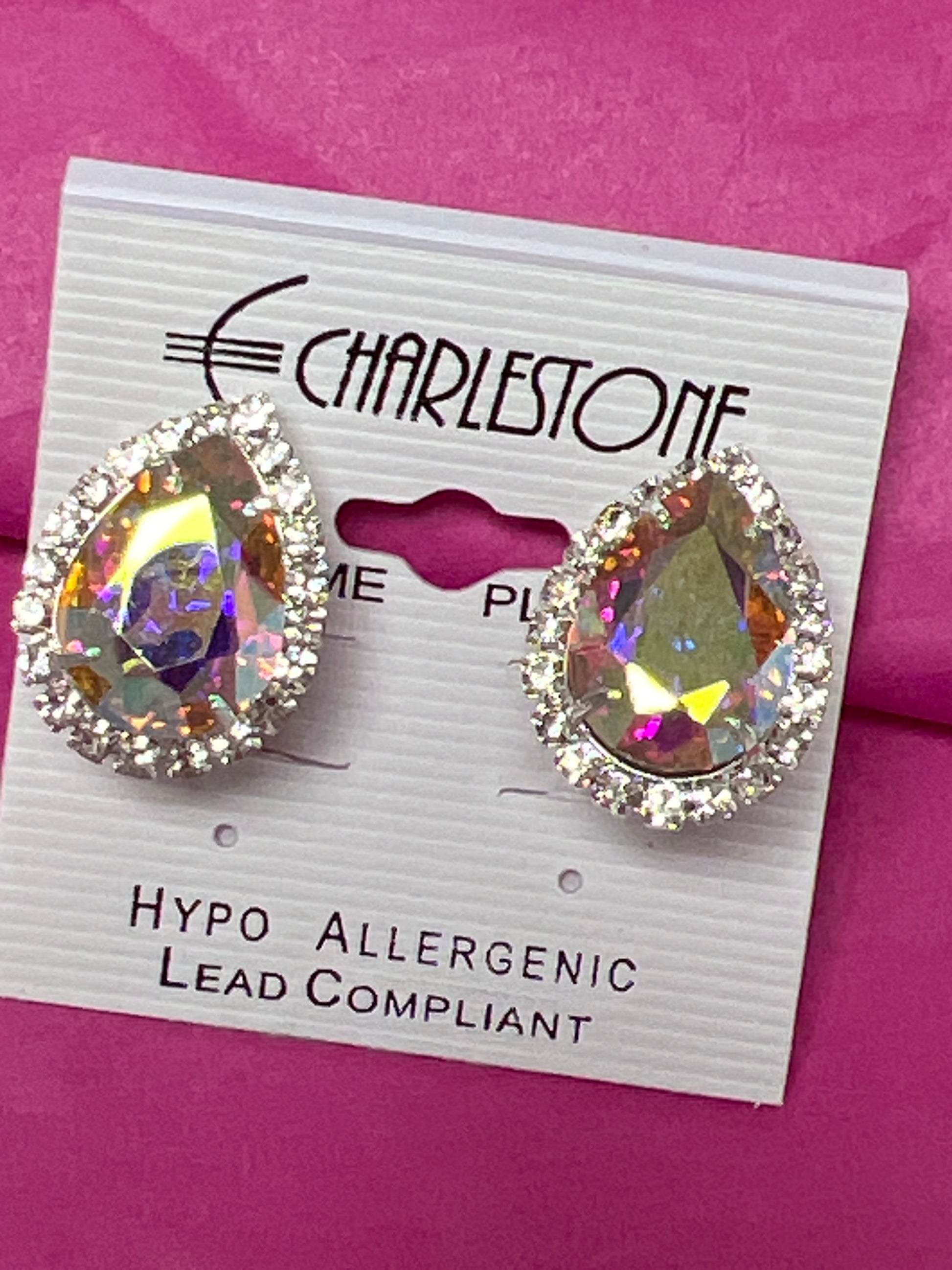 Silver Rhinestone Wrap Clip Earrings with Aurora Teardrop- 20145C101