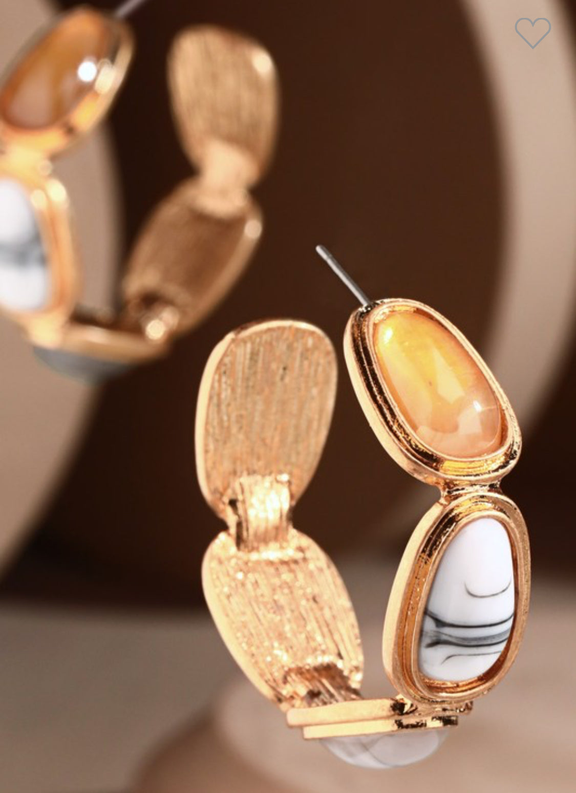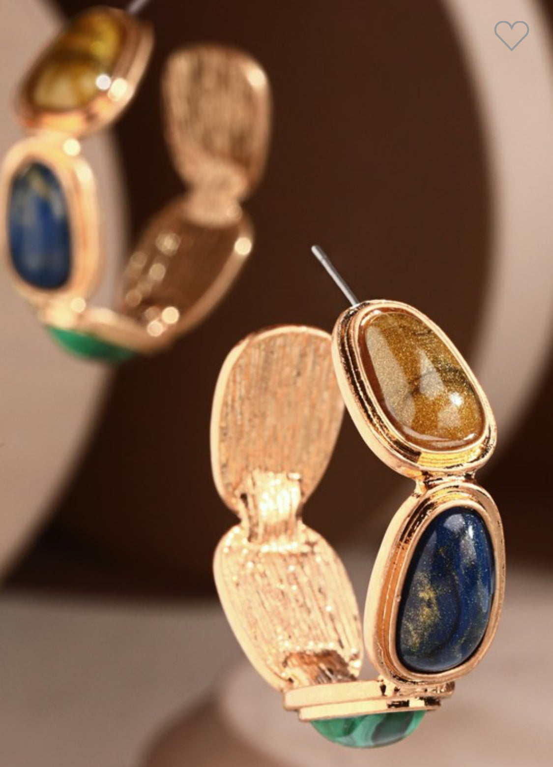 - Gorgeous hypoallergenic vintage finish stone hoop earrings with titanium post.