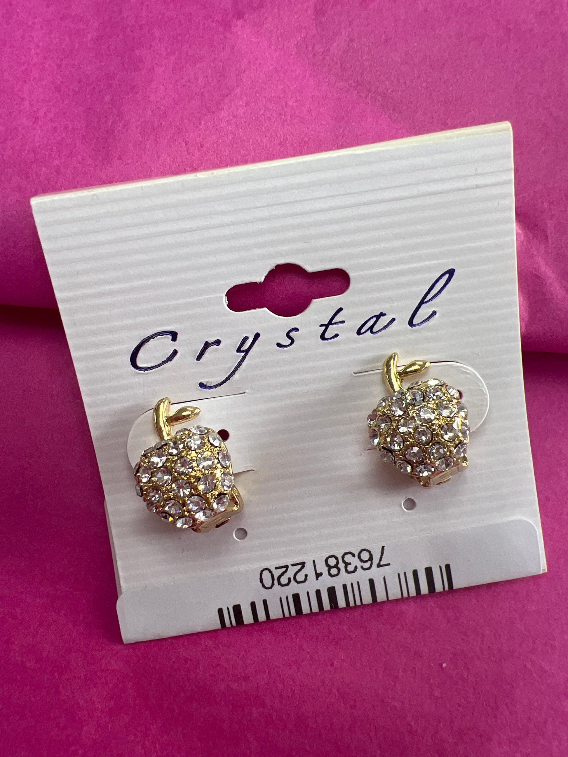 Wedding Gold Crystal Rhinestone Apple Clip Earrings- 22012C200